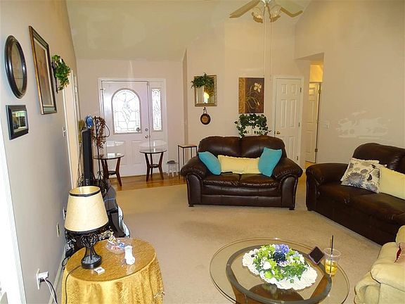 - Ceiling Fan, Garden Tub, Gas Logs, Some 9' Ceilings, Blinds, Ceilings-Blown, Smoke Detector, Countertops-Other, Tray Ceilings, Alarm System-Leased, Attic Fan
