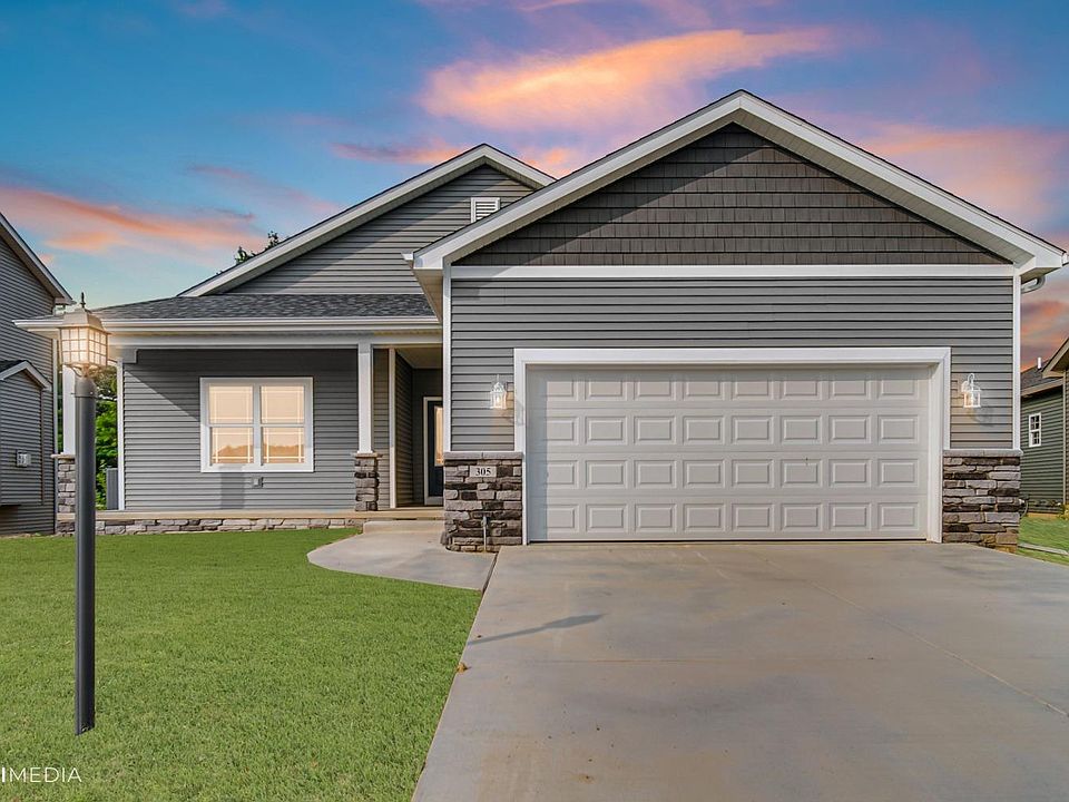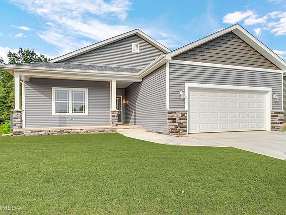 Lovely brand new construction ranch style home in Hatch Lake, Valparaiso. 3 bedrooms 2 full baths, 2147 finished square feet plus full daylight basement w rough in for future bath.Covered front porch w two stone columns welcomes you into the open concept floorplan w LVP flooring throughout the great room, dining, room, kitchen & laundry room. The great room has gas fireplace & volume ceiling. The kitchen has upgraded cabinetry, quartz countertops, island, & stainless steel appliances. Master bedroom has ensuite lux bath. Two additional bedrooms share full hall bath. Laundry room has drop zone w cubbies. Daylight basement is ready to finish & has energy star rated high efficiency furnace & tankless hot water heater. 2.5 car garage. Landscape package includes sod, mulch, trees, & shrubs. Deck. Builder's warranty.