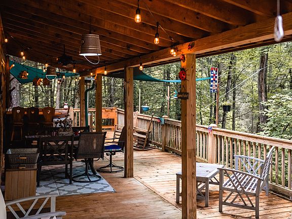 The closest thing to living in a TREE HOUSE... this hillside haven offers charming, comfortable cabin living along with the sound of the rushing water of Fightingtown creek and convienient location to downtown. This adorable cabin provides an OVERSIZED 14 x 48 party deck for all of those large family and friend gatherings. Submerge yourself in the welcoming waters of the on deck hot tub or simply kick back by the fire and relax to the sound of Fightingtown creek. Some furnishings remain providing easy transition to a rental/investment property if desired. The LARGE 16x20 out building makes for the perfect work shop for crafts, tools etc. A bonus SECOND lot makes for a little more privacy providing a true Hillside Haven retreat. Fightingtown creek deeded access tops off this perfect opportunity to make your dreams come true in the beautiful North Georgia Mountains.