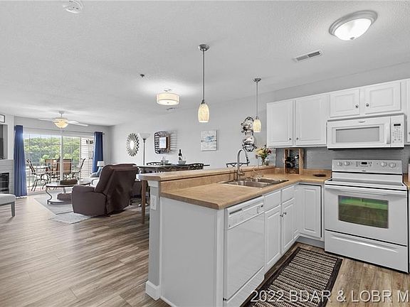 Welcome to lakefront living! Designed to capture the natural beauty of this destination location at Lake Ozark, this 2 Bed+ 2 Bath condo is the perfect lifestyle asset or investment. The newly updated + open floor plan offers scenic views of the Main Channel from the Screened-in Balcony/Deck, Kitchen, Living Area & Master Suite. Updates (2020 + 2021) include new luxury vinyl tile, carpet, fireplace w/shiplap surround, baseboards, cabinet hardware, backsplash, lighting & plumbing fixtures. This immaculate condo is turn-key/move-in ready and includes furniture, rugs and beautiful decor throughout and at the screened-in balcony. Central unit with connecting walkways lead to the lakeside pool, dog walking station & parking makes the transition to lake life seamless. The complex is conveniently located off HH and at 14 mile marker near entertainment, shopping, golf & dining by lake or land! Pack your bags, your lake life begins in Highland Shores!