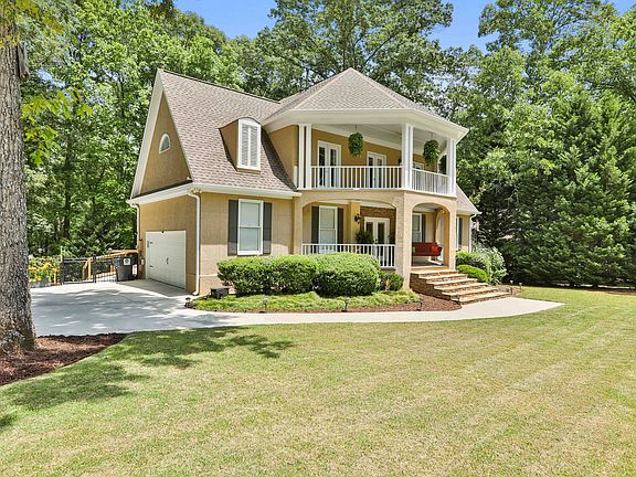 WALK TO THE LAKE FROM THE BACKYARD OF THIS SPECTACULAR, NEWLY RENOVATED GORGEOUS FAMILY HOME ON BASEMENT - WITH 2 MASTER SUITES ! From the moment you see the spacious front Porch and step inside, you will be delighted. NEW Wide plank, luxury vinyl hardwoods throughout the main living areas... Sparkling ALL NEW Kitchen w/ white cabinets, Quartz counter, big Level Island w/ Breakfast Bar... NEW SS Appliances inc Frig. Vaulted Family room w/ cozy Fireplace & rustic wood mantle. Bright Dining rm... Cool, upscale lighting throughout. NEW Carpet. NEW Master on Main w/ Designer-Look Master Bathroom, furniture style Vanity & large tile Shower w/ frameless glass. Upstairs Master Suite w/ double doors to deck outside. Granite counters, large tile shower & garden tub. 2 more secondary bedrms up + adjoining flex room. Large unfinished Basement w/ convenient Half Bathrm, carpet & Bar. Outside improvements include NEW expanded Deck w/ iron spindles, double steps to NEW patio below and Lawn storage room w/ pull up door. All NEW landscaping w/ lush lawn, abundant foliage including Tea Olives, Azaleas & flowers.. Big Fenced yard w/ lawn & play set + mature trees. Unique location - walk to seating areas on Lake from backyard and enjoy peaceful water views & natural setting. Enjoy Lake Redwine Plantation's terrific Amenities to include 300 Acre recreational Boating Lake & Marina, Pool house cabana, Swimming Pools, Tennis, Pickleball and Sidewalks. Quick access to I-85, Atlanta & Airport!