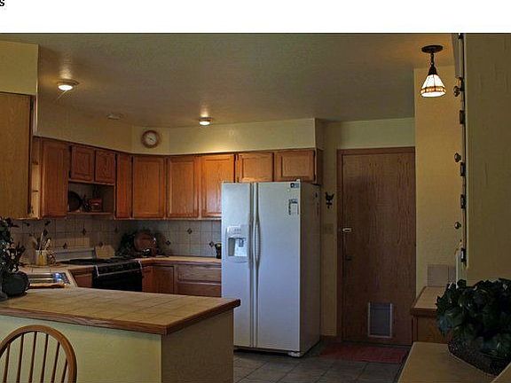 Comfortable, well maintained one owner home. No stairs at any of the entries. Beautiful yard w/ pergola covered patio, garden shed, sprinkler system & backs to farmland. Tile floors in entry, 3 lrg bdrms w/ spacious closets. Dinning rm w/ bay window currently used as sitting room. Open bright kitchen w/ pull-out shelves, walk-in pantry & all appliances included. Living rm has an efficient Encore wood stove, views of the back yard & door to the patio. Exterior has been freshly painted.