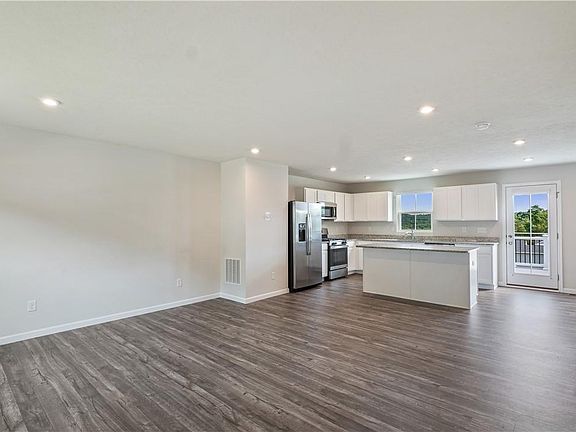 Stunning, like new, 2-story home located in Zelienople! This wide open concept is living at its finest! The main level entry leads directly into a spacious great room with luxury wide plank flooring that flows into an open, eat-in, center island kitchen that comes fully-equipped with stainless steel appliances and granite counter tops. The kitchen island provides more work space and extra seating! The kitchen also has a large pantry and separate area for dining. The first floor includes a home office or flex space. Upstairs the luxury continues with 4 large bedrooms, 3 of which boast walk-in closets. The owners suite features beautiful windows, a huge walk-in closet and a private, spa-like master bath with double-bowl vanity & glass shower. Huge, walk-out, unfinished basement is ideal for all your storage needs or future gameroom/entertainment space. New custom Trex deck and concrete patio, 2nd floor laundry, covered front porch, 2-car garage, walking trails and so much more!