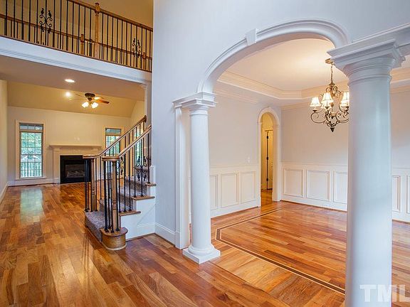 Immaculate home on a cul-de-sac lot with 3-car garage! Open floorplan with hardwood flooring and elegant picture window providing tons of natural light. Gourmet kitchen features granite countertops, gas range, and plenty of cabinets! Spacious master suite with separate sitting area, whirlpool tub, double vanities, and dual, walk-in closets. Sizable, unfinished basement, screened porch, and covered patio! Nearby to Neuse Golf Club and US-70! .