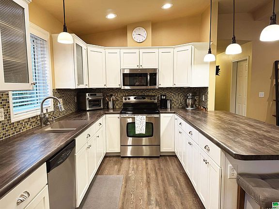 Charming Ranch Home in Prime Location. Nestled in a sought-after location near swimming pool, golf course, and scenic trails, this lovely ranch-style home offers 5 bedrooms, 3 full bathrooms, and a host of desirable features. The kitchen boasts tall ceilings, bright cabinetry, and included appliances, seamlessly connecting to open living spaces. Unique touches like lofted ceilings and a rural-feeling backyard with lush landscaping add to the home's appeal. Move-in ready and impeccably maintained, this residence also includes a size-able garage, main floor laundry, and a luxurious master suite for added convenience. Don't miss your chance to experience the perfect blend of comfort and convenience in this delightful home. Schedule a showing today!