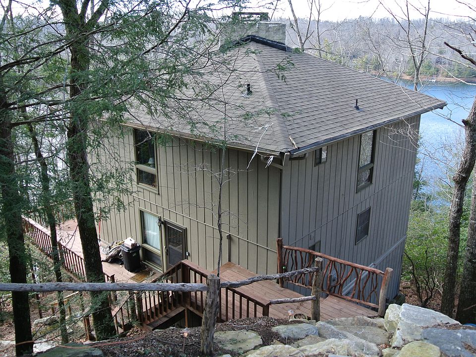 Unique artistic lakefront home with spectacular lake/mountain views. Includes your own boat dock, great fishing, swimming and boating. Home include multi-story glass windows with wrap around decks offering lake/mountain views from every room. Recently updated kitchen, spiral staircase leads to two bedrooms and bath above. Main level with a custom pit focusing on a 20 ft. wood-burning stack stone fireplace. Great rental potential