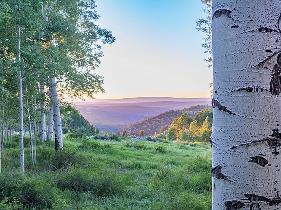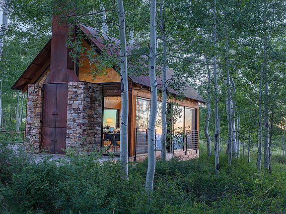 The epitome of tranquil setting is realized through three sides of glass bringing mature aspens and serene long distance views of the Uncompaghre plateau into your living area. A glass pavilion provides the ultimate glamping experience with an indoor/outdoor fireplace that can be used for cooking and a separate stylish bath house with full shower. A pond and rolling terrain add to the ambiance of this special 35 acre parcel that affords beautiful views of Hayden Peak, the La Sal Mountains in Utah and Lone Cone from various points on the property. Plans for an expansion are available or utilize the existing property as the ultimate summer getaway. Offered at $595,000 partially furnished.