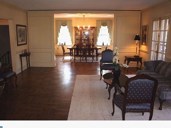 This elegant 4000+ sq.ft brick Georgian Colonial is sited on a picturesque 1.2 acres. Located at the end of a cul-de-sac in the highly desirable Northside Wynnewood, the timeless appeal of this home is immeasurable. Enter into the two story center hall foyer with grand staircase and sweeping views of the formal living room, English library (with private powder room and wet bar) and updated kitchen with all of today's desired amenities. The sun filled living and dining rooms boasts 9' ceilings and feature wall to wall french doors that lead to a tiled terrace overlooking the pool, gardens and amazing views. The large eat in kitchen has been updated to include center island with sink, granite counter tops, stainless steel appliances, custom lighting and counter top seating as well. This home has a wonderful open floor plan with a family room just off of the kitchen, 2nd powder room on the 1st floor, and custom molding throughout. The wide staircase to the lower level has classically designed wrought iron railings that lead you to an amazing space for entertaining centered around a pub style wet bar with granite counter tops, a full bath, exercise room that is enclosed by Plexiglas, large windows throughout and french doors that lead to a sun-room with sliding glass doors. With all the natural sunlight that occupies this walk out basement (complete with two exits), you will not feel as if you are on a lower level. The 2nd level has wide hallways, a sitting area and french doors at both ends of the hall that lead to verandas. The Master bedroom suite has his and her bathrooms and a large dressing area with custom closets. The 3rd level features a large 4th bedroom suite with sitting room, two walk-in closets (one cedar) and storage area. The outdoor living spaces are just as lovely as the interior. You can relax on the 2nd floor terrace overlooking the grounds or just enjoy the relaxation of the sun-room while gazing over the jacuzzi and heated pool with its retractable cover. If love is truly in the details then you will certainly appreciate the many small things that make this home so special such as marble window sills throughout, the intricate mill-work, the wide staircases, pocket doors, beautiful wrought iron railings on every level, the inviting front porch balustrade and the gently curved circular entry driveway. This gorgeous home is located within walking distance of the shops, restaurants and transportation of Suburban Square. AMAZING!