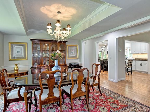 Nestled at the end of a cul-de-sac in the desirable Key West Estates, this stunning home offers a peaceful, park-like setting with mature trees and lush landscaping. The wooded backdrop provides privacy and natural beauty, all within minutes of west side amenities. Step into the two-story foyer and take in the open floor plan. The soaring two-story living room features vaulted ceilings, skylights, and a balcony overlook connecting the upstairs bedrooms, bath, and bonus room. Natural light floods the space highlighting the thoughtful design and high-end finishes. The entire main level was completely remodeled by Loehrlein Carpentry in collaboration with HG McCullough Designs. Highlights include engineered hardwood flooring throughout, all-new lighting, and a striking new fireplace with porcelain tile surround and custom mantle, topped with a wall-mounted 75" TV. The spacious kitchen is a showstopper-fully renovated with new cabinetry, quartz countertops, a large island with pendant lighting, and high-end appliances, including a GE Profile 4-burner gas range, double GE wall ovens, Whirlpool refrigerator and dishwasher. A built-in coffee bar featuring a Delonghi espresso machine adds a touch of luxury to your morning routine. A new walk-in pantry with built-in shelving and a pocket door sits adjacent to the redesigned laundry room, which features a utility sink. A stylish mudroom with coat hooks and a bench seat was added next to the updated half bath. The main-level primary suite boasts new carpet, a remodeled bath with double quartz vanity, a walk-in tile shower with bench, a large walk-in closet, and a half wall for the commode. Upstairs, you'll find four generously sized guest bedrooms with plenty of closet space, a full hall bath with two vanities, and a bonus room with vaulted ceiling, built-in shelves, desk, closet, and its own half bath. The entire upper level has been freshly painted. The full, unfinished basement includes a workshop area, ample storage, and a staircase leading to the garage-offering endless potential for additional living or recreational space. Enjoy the serene outdoors from the freshly stained deck spanning the rear of the home, overlooking the beautifully landscaped backyard and wooded surroundings. Outdoor living is elevated with a gazebo furnished with a table and chairs, and a Weber gas grill-perfect for entertaining or quiet evenings at home. A charming picket fence encloses part of the yard-ideal for kids or pets.