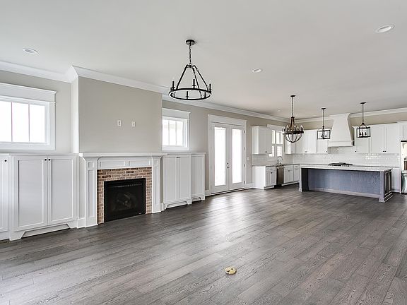 This beautiful ranch presents a rare opportunity to own a plan previously built in Norton Commons in the St. Matthews area! The open concept offers a ton of possibilities and sight lines throughout the first floor living space. The living room has built in bookcases surrounding the beautifully tiled fireplace. Flowing into the dining room area, a farmhouse chandelier awaits your grand table for friends and family to gather. The eat-in-kitchen has two tone cabinets, a large island, stainless steel appliances, and marble countertops. The rich warm colors of the hardwood flooring, bright kitchen, and open concept living areas are accented by luxurious white trim finishes throughout.