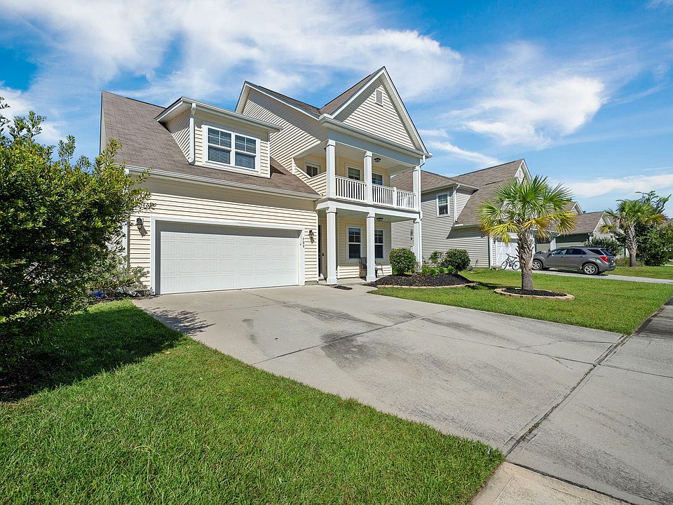 DOUBLE FRONT PORCH!! DUAL PRIMARY! 4 bedrooms, 3.5 baths, oversize living area, fire place, lg kitchen w/8ft granite counter, equipped with stainless gas range, microwave and refrigerator, dishwasher. Hardwood thru out downstairs and plush carpet in bedrooms. Large primary owner's suite on main level with huge owner's bath, complimented by separate tub & shower, dual raised vanity & large walk-in closet! Formal Dining room currently set up as an office. Upstairs are 3 more bedrooms, with 1 of them being a 2nd primary with a Large sitting area and its own ensuite! Rinnai Tankless water heater. Fenced in backyard with screened lanai and large concrete patio! DON'T MISS THIS HOME!!
