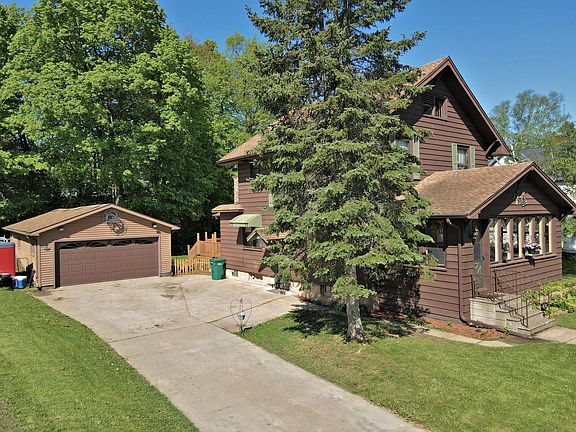 Step back in time to the roaring 1920s with this meticulously maintained home, overlooking picturesque Trout Lake. As you step through the front door, you're greeted by a grand foyer adorned with intricate millwork and gleaming maple hardwood floors and oak banisters, setting the tone for the elegance that awaits within. The spacious living room boasts soaring ceilings. The kitchen combines vintage charm with contemporary convenience. Adjacent to the kitchen is an airy formal dining area, ideal for hosting gatherings. You'll enjoy the original built in cabinets encased with glass. Additional amenities that are sure to be enjoyed are a sauna, newly constructed deck, and an enclosed porch to view Trout Lake. The driveway leading to the large garage is concrete and just beside the garage is a grilling shelter. The basement has been used as a recreational room furnished with a pool table. This property has so much to offer!