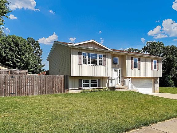 Check out this fantastic 3 bedroom, 2.5 bathroom home located on a corner lot in desirable Edgewood Subdivision. The main floor boasts a spacious living room, a large kitchen, 3 bedrooms, and 2 full bathrooms. The 24 x 11 eat-in kitchen is a highlight with its sliding glass doors opening to the deck, tile floors, breakfast bar, stainless appliances, pantry, and vaulted ceiling over the living room and kitchen. Step out onto the multi-level deck, where you can access the yard on one side and an above-ground 18 ft round pool on the other, all surrounded by a privacy fence. The Master bedroom comes complete with its own full bathroom, including a relaxing tub. And that's not all – the property also features a large climate-controlled garage equipped with a mini-refrigerator and a TV. The lower level is perfect for entertaining with its 24 x 15 family room, convenient half bathroom, and a separate laundry room (washer and dryer included). Located in Robein Elementary School District. The water heater was installed in 2023 and the carpet on the main level is only two years old. Don't miss your chance to make this your new home - schedule a tour today!