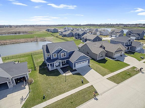Lakeview home in popular Prairie Meadows subdivision with open floorplan that is sure to please. Very well appointed home featuring hardwood floors, kitchen with white cabinetry, granite counters, stainless appliances and walk-in panty. Master suite with lake views, vaulted ceilings, walk in shower, jetted tub, double vanity. The other three bedrooms all have walk-in closets. The many upgrades, include: built-in cabinets in living room, custom shower surround in master, glass door on shower, master closet wood shelving, built-in storage cubbies, large picturesque window in stairway, upgraded carpets, wood and tile flooring, upgraded light fixtures and kitchen cabinetry, added one extra window to make it a triple window in the living room and master to take fully advantage of the beautiful view, expanded patio with gas hookup and soft close on drawers. The basement is unfinished for storage or future living space. Close to Colbert Park, Carrie Busey Elementary School and shopping.