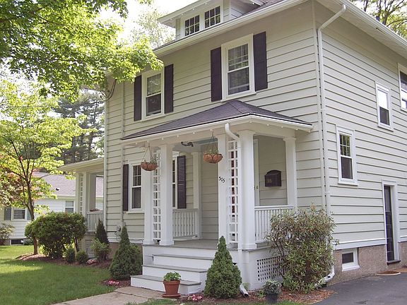 Classic American Four Square home located in a wonderful neighborhood just behind Needham High School and walking distance to Needham Center and all trains. Many recent updates including heating system, windows, electrical, bathrooms, & int/ext painting. Refinished harwood floors throughout. Landscaped, flat lot. Lovely covered side porch and additional 300 sq ft of finished living space on lower level.