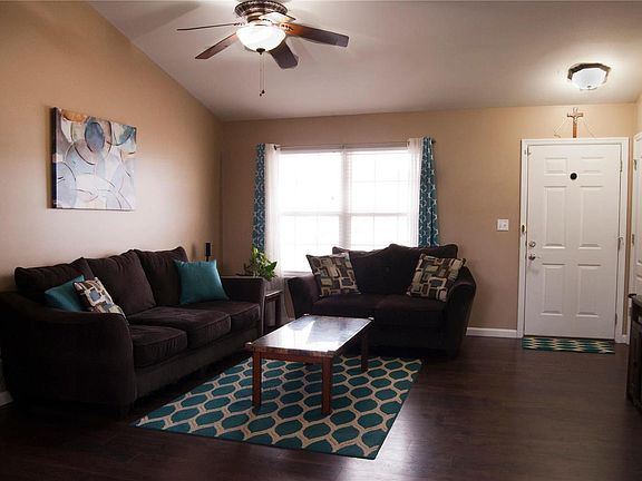 One Story you'll love! 3 Bedroom 2 full bath Move-In ready Ranch located in Wentzville. Walk into the open concept great room with vaulted ceilings and large bright windows. Your new eat in kitchen includes staggered cabinets with crown molding, a large pantry and brushed nickel finishes throughout. The main floor laundry room off the kitchen will lead you to the two car garage with an extended area on one side for hobbies as well as additional shelving for storage. Full basement with 1/2 bath rough in plumbing is ready for your finishing touches. Security cameras located near the front and back door. Subdivision has large community pool and is located in the Wentzville School District.