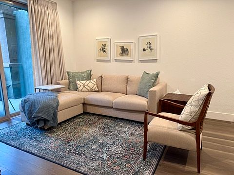 Quiet 3-bedroom, 3.5 bathroom, 3 floor townhome in a kid-friendly community with 2 playgrounds, an outdoor entertaining space with a bbq, fire pit, and Loll Design lounge chairs, and a grassy space for dogs (including a doggy poop station). Built in 2020 with all of the upgrades, the home features a chef's kitchen with GE Cafe appliances, hardwood floors, and views of the oak tree in the courtyard. The house has high ceilings, lots of light, and a strong cross-breeze. 2-car garage with epoxy flooring, track storage system, and EV charging outlet. Features: - 3 bedrooms with en suite bathrooms + half bath off of the living room - Hardwood floors on first and second floor with carpet on the third floor - Shade Store and Hunter Douglass shades throughout; Primary bedroom includes full blackout roller blind with remote - Energy efficient central AC and heat with Honeywell Home smart thermostat - Large open floor plan kitchen/dining/living room space with a large deck off the living room. Kitchen features a stainless steel sink, quartz countertops, and a large peninsula with a bar that seats 4. - GE Cafe smart electric oven, gas stove top, dishwasher, and microwave. All Cafe appliances can be controlled via app - you can preheat the oven on the way home from the grocery store. - GE washer and gas dryer - can be controlled via app, including remote starting the washer from your phone. - New LG french door refrigerator - the most reliable on the market - Spacious primary bedroom with 10' ceilings, large windows with a view the oak tree in the courtyard, remote controlled blackout Hunter Douglass roller shades, 2 walk-in closets, and large walk-in shower - 2-car garage with EV charging outlet, epoxy flooring, fast-track hanging storage system, and MyQ smart garage - Fiber Internet available up to 5Gbps via AT&T, Xfinity cable also available. Home pre-wired for ethernet and cable. Marquetta/Thea community features: - 2 playgrounds (one in Thea and one in Marquetta) including slides, rock climbing wall, and more - Outdoor entertaining space with a grill, fire pit, granite countertop bar, Loll Design lounge seating, and picnic tables. - Grassy area for dogs, including a doggy poop station with poop bags and trash can - Beautiful landscaping including cherry blossom trees, palm trees, and a large oak tree Prime location - 10 minutes walking to Safeway and Starbucks on Rengstorff - 15 minutes walking to Rengstorff Park, which has the brand new Rengstroff Pool and Magical Bridge playground - 3 minute drive to Midwife and the Baker and Wyandotte Park - 5 minute drive to Trader Joe's, Target, Safeway, and Whole Foods off San Antonio - 6 min drive to Google, 15 min drive to Meta, 8 min drive to Microsoft, 10 min drive to Linkedin - Close to the Facebook and Google shuttle stops - Access to the Permanente Creek Trail, which leads to Shoreline Park, Intuit offices, and Google offices - Easy access to 101, 85, and Central Expressway Renter responsible for all utilities (electricity, water, trash, internet, cable, etc.). Owner pays HOA fees.
