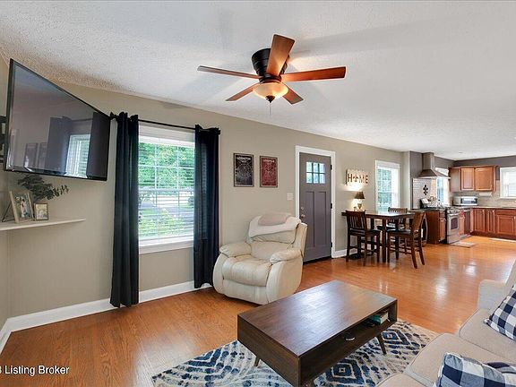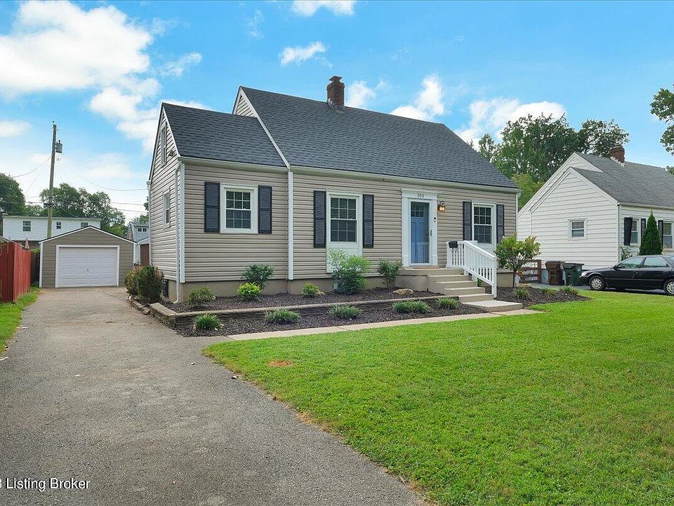 Welcome home to this cozy cape cod in the heart of St Matthews. This home features an open floor with plenty of natural light throughout the family room and kitchen. Stainless steel appliances, tile backsplash and gorgeous granite countertops complete the eat in kitchen. There are 2 bedrooms, one which could be used as the primary bedroom, and one full bath on the first floor. Upstairs is a larger bedroom with built in shelves, a large closet area and exposed brick. The basement has a bar area perfect for entertaining family and friends, laundry room and storage closet. The backyard is completely fenced with a 1 car detached garage. Call today for a private showing!