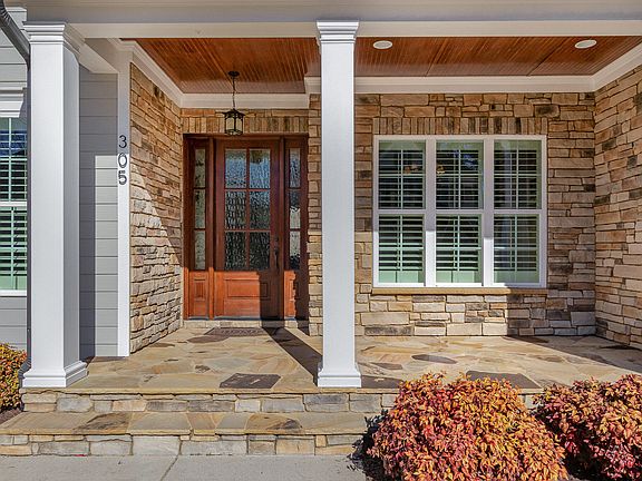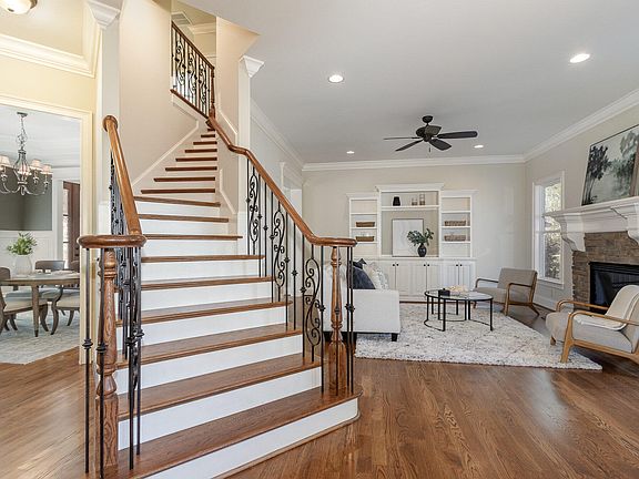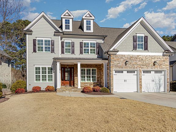 Award winning Parade Home, spacious 5-bedroom home with tons of upgrades in sought-after Estates at Olde Carpenter/Carpenter Village! Featuring a first floor guest room suite, dining room, and a versatile downstairs office and second floor bonus room. The kitchen has a center island, stainless steel appliances, and granite countertops seamlessly connects to the family room. Sip your coffee on the huge stone front porch or enjoy the fenced yard and large back screen porch and walking distance to the elementary school. The primary bedroom with beautiful crown molding, and a spacious bathroom with double vanities, soaking tub, and shower and a huge walk-in closet. Two secondary bedrooms share a jack and jill bath! Also there is a walk-up attic on the third floor for ample storage that is plumbed for full bath and is ready to be easily finished. Additional features include a second floor laundry room, a mudroom area with builtins, family room builtins and upgraded stone fireplace. The home has plantation shutters throughout and a sealed crawl space. There are endless community amenities include a swimming pool, playgrounds, tennis courts, and walking trails around lakes. Plus, it's conveniently located near RTP, 540, Parkside Valley,and top-rated schools like Green Hope High School. Google Fiber or AT&T Fiber are available. Don't miss out on this incredible opportunity!