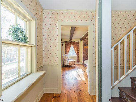 You will fall in love with this beautifully updated bank house! Fabulous remodeled bath on the first floor! Remodeled kitchen with farm sink and copper countertops! Exquisite wide plank flooring! The home is a perfect mix of history and modern amenities in turn key condition! Living room with beamed ceiling and wood stove! Formal dining room with original cooking fireplace! A screened in porch on the first floor level offers expansion possibilities! Ground level bedroom or family room! The garage is finished with a work space and loft area that could be used as a game room or office or guest space. A second outbuilding provides a yoga studio, potting shed, or quiet area. Private back yard and patio. Natural gas heat and central air! Newer septic and city water! A delightful blend of old and new!