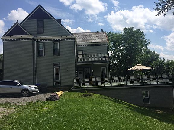 Beautifully restored Historic single family home with 4 bedrooms and 3 full baths. Victorian features such as transoms, exposed brick, spacious rooms, and 11 foot ceilings. Don't miss this unique opportunity! Spacious entryway, office, and bright living room with bay windows. First floor bedroom with full bath. Master bedroom with en suite including walk-in shower, claw foot tub, his-and-hers sinks and walk-in closet. Second floor laundry room with washer and dryer hookups. Eat-in kitchen with butcherblock countertops and subway tile. Refrigerator, electric stove and range, dishwasher, built-in microwave, garbage disposal, and large walk-in pantry. Enormous back deck, partially covered by upper deck accessed via master bedroom. Central air conditioning and heat controlled by thermostats on each floor. Two car attached garage, workshop, and plenty of storage space in basement. $1800/month plus utilities. One year lease and one month security deposit required. Preference will be given for longer lease term. Small pets considered on individual basis. Walking distance to the Harmony Inn, Center of Harmony, and quaint historic district. Easy access to 79 - just 10 minutes from Cranberry, 35 to downtown Pittsburgh. Minutes from Seneca Valley schools, close to Zelienople. Owner pays all utilities