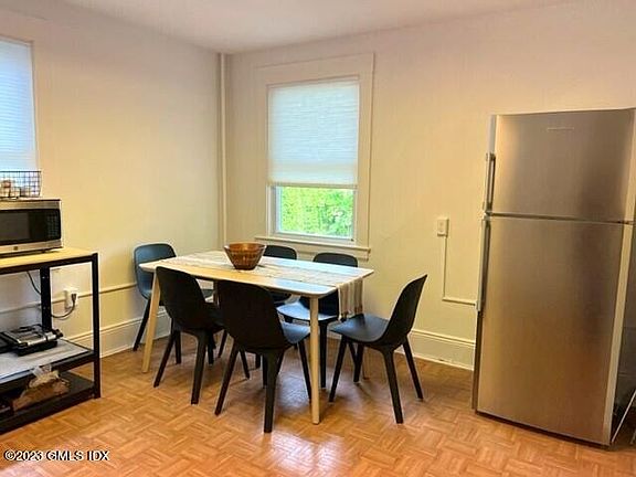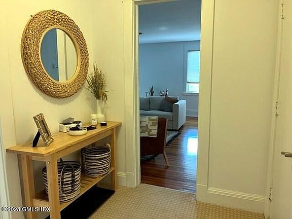 SUNNY CENTRAL GREENWICH APARTMENT MINUTES FROM ALL THE FUN AND TRAIN! WELL BEHAVED PET ACCEPTED - WOOF! Spacious 2 bedroom, 1 bathrrom with newly updated kitchen apartment is seconds from Greenwich Ave and Metro North. Welcoming entry foyer opens on one side to a large living room with lots of sunlight. The eat-in kitchen has cook top, wall oven, dishwasher and fridge has white cabinets and plenty of storage. Main bedroom and a second bedroom which could be used as a den or home office. Washer/dryer in the unit. Central air and gas heat. There is off-street parking in back and a beautiful, shared, front porch. Amazing breeze flows throughout this second story, roomy apartment. Owner Expenses: Grounds Care Snow Removal Trash Removal Water Tenant Expenses: Cable TV Credit Check Electricity Gas Heat Tenant Ins Policy 12 months but landlord prefers 2 year lease.