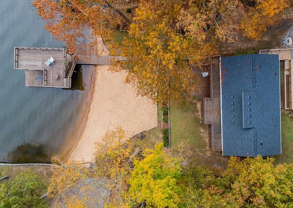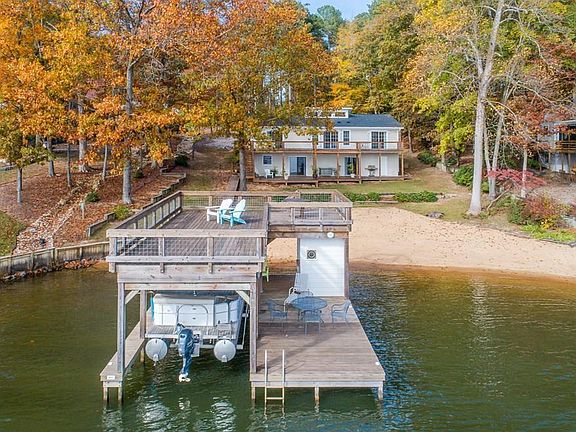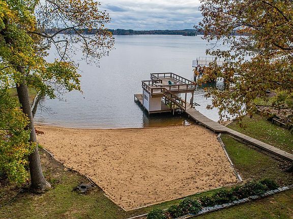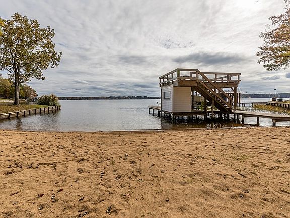 RARE FIND-MAIN LAKE-SANDY BEACH! This property will not disappoint w/ wide main lake views & amazing natural sandy beach! Tucked slightly back, this property is protected from the main lake traffic & wave action allowing swimming floating & kayaking w/o sacrificing wide water views! There is new siding, windows, roof, & new full length decking on both levels. The well built boathouse w/sundeck, boat & jetski lifts, is surrounded by a beautiful flat natural sandy shoreline & good deep water at the end. Open & airy home w/ tall cathedral ceilings, totally renovated kitchen w/ custom cabinets, granite countertops, impressive tile backsplash & wood floors-Waterfront master w/ 2 closets, bath w/tile shower & jacuzzi tub. Lower level w/rec room, kitchenette, office & full bath sq footage is not included as heat is a gas wall unit. There is a 10x16 workshop & storage shed. See today!