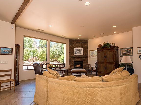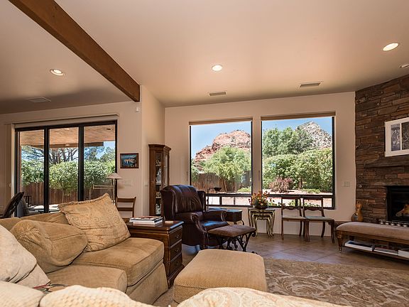 Well designed contemporary Southwest home in a peaceful low traffic area of West Sedona with a view of Sugarloaf that you can almost reach out and touch. The stylish kitchen features stainless steel appliances, granite countertops, alder cabinets, pantry and a center island with breakfast bar. The split bedroom floor plan is highlighted by a large master suite with his & hers walk in closets, walk in shower and separate tub and dual vanities. Landscaped exterior includes a 22 ft by 10 ft covered paver patio looking out at Sugarloaf, & paver driveway. 646 sq. ft oversized garage with a wall of built in storage. Subdivision has its own trail access to avoid the crowds! Refer & freezer in the garage included. Sellers have never lived in the home and will not be providing a seller disclosure
