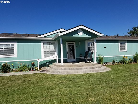 Ready for you to call home! This well kept, clean mfg home is on a large lot with a covered patio, landscaping, large rooms, lots of storage and skylights. This home has new laminate wood flooring and paint throughout. Private den. A breezeway joins the double car garage to the home a nice storage compartment is in the garage. Underground sprinklers make watering a breeze. Enjoy summer nights in your private little oasis.