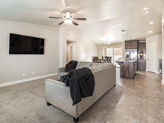 Don't miss this one in the Sky Ridge subdivision. This home has a split floor plan with the master on one side of the house and the the two guest rooms on the other side. Open concept kitchen and family room area. Kitchen has granite counters, lots of cabinets and a large island, plenty of room for the cook in the house. Fully landscaped yard front and back. RV pad with full hookups!