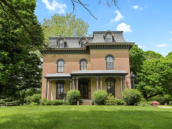 This historical gem was built in 1872. You'll be charmed by original character & features, but also pleased with the modern updates & comforts. A perfect blend of the past & present. This stunning 5 bedroom, 4 bath brick house sits majestically on 1 acre & is surrounded by black wrought iron fencing on E & N sides. The grounds are pretty, you'll feel as if you're in a park w/ features such as a gazebo, flowering plants & gorgeous mature trees (peonies, raspberries, red bud trees, burgundy beech tree & so much more). The 1 acre lot is equivalent to 5 city lots plus 1/2 of another 5 lots, so there is room to roam & enjoy or there is plenty of space for any additions you'd like to make; ie veggie gardens, greenhouse, swimming pool etc. The architectural style of the house is referred to as 'Second Empire Victorian' and it makes you take notice as you drive by or approach the house. It is very impressive. As you walk towards the front door, a welcoming front porch beckons you to the porch swing, a great spot for afternoon tea. As you walk in the front door you are greeted with a grand staircase. If you look up, you'll notice it regally ascends 3 levels. It is lit up by a stunning original chandelier. Notice all the original lights are still in place - converted from gas to electricity. They are spectacular & a great nod to the house's original splendor. As you amble through the main level, pay special attention to the floor to ceiling windows that let light flow and bounce around the rooms. Also note the spaciousness with 10 1/2' ceilings (1st & 2nd floors) and all the original wood floors. The dining room floor is spectacular with pine & walnut wood planks alternately laid. The library/den on the main level could be converted to a bedroom, complete with 1 of the 4 baths. The main level also features a dual living space, a designated dining room with built-ins and the kitchen. The kitchen has been updated with plenty of storage, an island that offers great counter space. The back porch off the kitchen gives you access to the backyard and is also a great spot for a drop zone. The second story offers 4 bedrooms & 2 full baths. The 10 1/2' foot ceilings, all the natural light, wood floors, original lighting, updated bath and laundry area are sure to please. Then the 3rd level (which was originally a ballroom) now features a guest suite - complete with a living space, kitchenette, bathroom and bedroom (without a closet). There is another very generous sized room (counting it as a bedroom w/ 2 closets) that could be an office / exercise area / craft room / 2nd family room / or it could be transformed to 2 bedrooms. The opportunities are limitless. These additional rooms (library on the main level & the rooms on the 3rd level) could be converted to additional bedrooms, if you needed 8 bedrooms. Additional information: Fiber optic internet is installed. Heating / AC: 3 systems contribute to the comfort of the house: geothermal, a newer very efficient hot water boiler & forced air system. They can all be used simultaneously or independent of each other. 200 amp electrical service. There is a 3 car garage with a wood burning stove that could be installed to have a year-round space to work. The basement is sure to impress with high ceilings (large portion of basement was dug out & concrete floors poured.) A useful dry basement w/ storage, a workbench & laundry area w/ large utility sink. This home is sure to please. It's beautiful & a piece of history - perfect for entertaining. Located in a nice small town & walking distance to the Jr High, High School, library, post office & restaurants. The fact that the town is mere minutes to Champaign: it would make a great bed & breakfast, being so close to the U of I. Easy access to Interstate 57, 72 & 74. The home has been showcased in the Country Living magazine & featured in News Gazette. Sellers are offering a 12 month home warranty. Furniture is negotiable