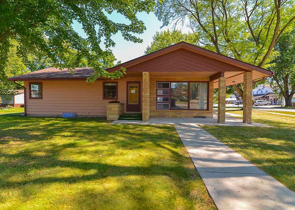 Family focus, located in the heart of Spring Green and within walking distance to library, downtown and park. Prairie Style, stone and cedar, 5 bedroom, 2 bath ranch offers such amenities as, office with outside entry, first floor laundry, original hardwood floors, all new appliances, 2 fireplaces, and finished, exposed lower level with huge family room, 3 bedrooms, a full bath and shop area. Attached 1 and a half car garage and patio. Lovely corner lot, ideal for family!