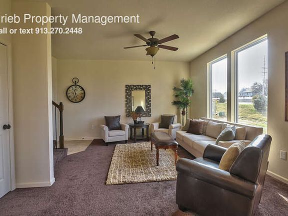 SCHEDULE A SHOWING ONLINE AT: showmojo.com/lh/54db1580b6 Welcome home to Prairie Haven. All of our Prairie Haven Duplexes are located off Santa FE and N. Hedge Ln. in Olathe. Just North East of the Brand New Olathe West High School. Lower Level includes nice open Living Room, Eat-In Kitchen with great cabinet space that includes the dishwasher range and garbage disposal, 1/2 bath off kitchen, pantry, coat closet, entry to Garage and access to the full unfinished basement. Upper Level Includes large Master Bedroom, attached Master Bathroom with double vanity, two secondary bedrooms with good size closets that share the full hall bathroom and linen closet. Utility room with washer/dryer hook-ups is also upstairs on the bedroom level. Full Unfinished Basement works great as extra storage or an additional play space. Pet Friendly - No Weight Limit. Two pet limit per unit. $150 Non-Refundable Pet Fee per pet and an additional Pet Deposit of $150.00 per pet for ALL pets. Monthly pet rent is based upon the full grown weight of each animal. For more information or to fill out an application please visit our website: