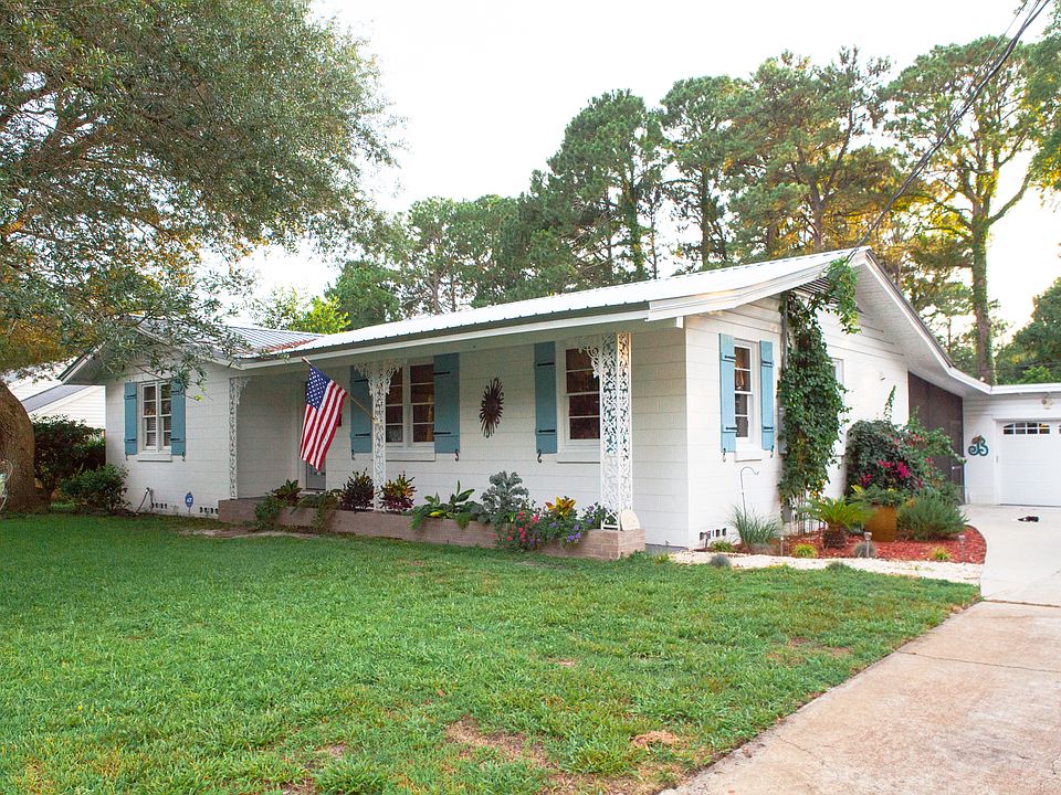 Not your typical Cove floor plan. Check out the room sizes. All of the rooms are quite a bit larger than the typical cove home. In addition to the oversize master bedroom the second bedroom is larger than most masters.Sturdy block structure with Metal Roof on a high and dry double lot with convenient alley access from the rear. Two bedrooms,two full baths with easy access shower in the master. Remodeled eat-in kitchen with new appliances. Spacious living/dining and a good size den. Dining room fixture&ceiling fan master excluded(sellers will replace) There is a 468 detached garage/workshop that is accessed by going through a 400Sf screen enclosed outside entertainment area. Schedule an appointment today to see this property that just feels like home. New A/C Condensing unit 3/30/17