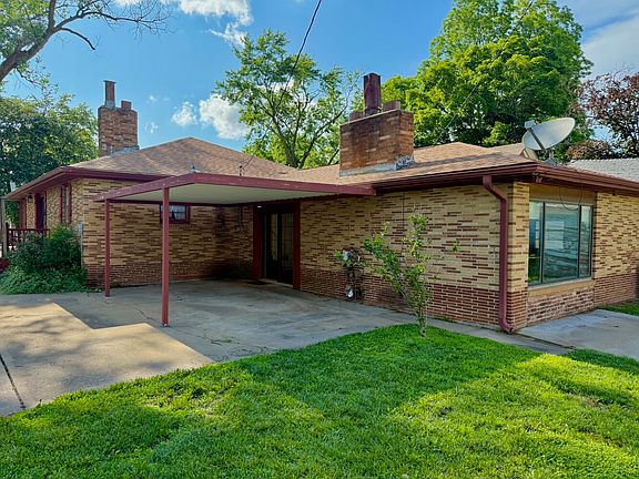 Welcome to this brick 2-bedroom, 1.5 bath home situated on a generous and beautiful corner lot just a few blocks from the historic town square. Step inside to discover two comfortable living spaces, a bright family room at the front of the home, and a cozy den with a fireplace at the back, perfect for relaxing or entertaining guests. The functional layout offers a well-sized kitchen, convenient half bath in the laundry room, and two comfortable bedrooms bookending a large main bathroom. Outside, youll enjoy a covered patio, partially fenced yard with room to garden, play, or simply unwind. The single detached garage provides not only secure parking but also plenty of extra storage space. *Inspections are permitted, but the property is being sold as is. Property is identified in the floodplain and may require flood insurance.