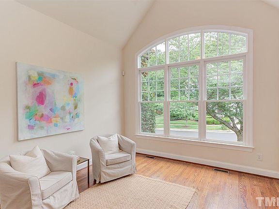 Lyrical Larkspur abode. Harmonious blend poetic hues, smart composition, flex spaces. High notes: hrdwd, granite, b-ins, jazzy tile, tony moldings, soulful natural light. Big family rhapsody in kitchen/fam w 10ft clngs, bespoke cabs, wall of windows. Whistle while you work/play in 2nd+3rd lvl bonus. Enjoy birdsong on screen porch + deck. Private, lvl yard w symphony of mature greenery. Be happy as a lark at swim club, play park, bb hoop. Music to the ears: UNC/Duke <15min. All in unison: "Homeward Bound!"