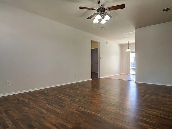 Welcome Home! This charming, move-in-ready residence offers the perfect blend of comfort, style, and convenience. Available unfurnished, the home boasts NO carpet throughout, creating a fresh, spacious, and easy-to-maintain living environment. The heart of the home is the updated kitchen, featuring freshly painted cabinets and a layout ideal for both entertaining and casual family meals. Freshly painted walls throughout give the home a bright, clean, and modern feel. With three bedrooms, a private backyard & gardens, complete with a large covered patio, and ample space for both relaxation and productivity, this home is designed for versatile living. Step outside and enjoy access to the community pool, perfect for cooling off on hot Texas summer days. Situated in a highly desirable location in the Vista Ridge community near top-rated schools, shopping, dining, and Robin Bledsoe Park, you'll have everything you need right at your doorstep. Don't miss the opportunity to make this beautiful, peaceful property your new home. Tenants are responsible for all utilities. Pet rent (50.00)/per pet and a deposit ($300) will be collected at move-in, along with the first month's rent and refundable deposit. There is a $50.00 fee to run a credit check. & $50.00 HOA pool key Serious renters only, please.