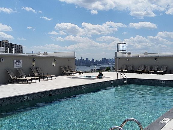 Modern 2 bedroom 2 bath unit for rent at Cliffside Views - Cliffside Park's luxury 3 year young rental building with amenities including its exclusive rooftop deck with stunning NYC skyline views, outdoor in-ground pool, Jacuzzi & barbecue area, Residents' Lounge, gym, doorman, dry cleaning and maid services! Spacious 1,300 sq. ft. unit featuring high-end finishes throughout including Brazilian cherry wood floors, over-sized windows, high ceilings, modern eat in kitchen with stainless steel appliances, granite counter-tops & breakfast bar, open living/dining area, modern full baths & large BRS with walk in closets! Washer and dryer in unit. 1 indoor garage parking spot included in the rent. 2nd space: $75/month. Tenant responsible for all utilities except cold water. Pets up to 50 lbs permitted with non-refundable $500 fee plus $50/month additional per pet; 2 max. Convenient location within minutes to public transportation, parks & shopping including Edgewater's City Place restaurants and stores. Easy NYC commute! Available immediately!