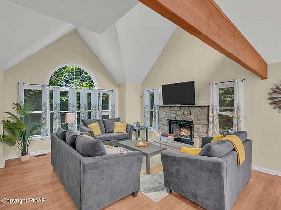 Nestled in the prestigious Pocono Farms Country Club & Golf Community, this Stunning Contemporary Colonial offers a lifestyle of luxury and comfort. Boasting 3 bedrooms and 2 baths, this home is designed with an open-concept living space that seamlessly blends modern elegance with timeless charm.
