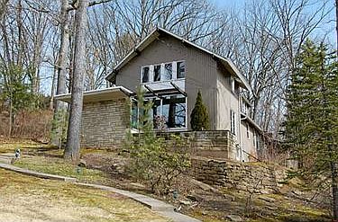 What a unique home in the heart of Fox Chapel! Living room offers a wall of windows, hardwood floors and a stone fireplace. The kitchen leads into a breakfast area that overlooks a large sunken family room with vaulted ceilings and another fireplace. There is one bedroom and bath on the 1st floor and 3 bedrooms, a bathroom and an additional room/office space on the 2nd floor. Bedrooms offer many built-ins! Outside you will find a large patio area with in-ground pool, all in a private and serene setting.