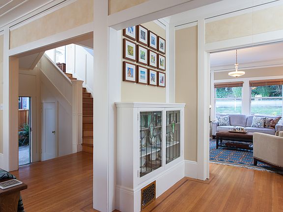 Welcome to the warmth of this lovingly maintained Arts & Crafts era Prairie-style Craftsman home. Period details envelop you here, including leaded, stained, beveled glass in the "Butler's Pantry" built-ins; Frank Lloyd Wright "Tree-of-Life" curtain panels in the living room windows; milk-glass fixtures in the entry hall; and quartersawn inlaid oak floors throughout the main level. When it's time to emerge from your sanctuary, you will find the Lake Merritt area has the varied local dining, farmers markets, and essentials you want and need, all nearby. With a plus room that makes a perfect office, and a large, full-height basement with work space and storage, you will have everything you need here. Just imagine the possibilities!