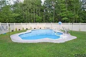 Colonial Fam Hm w/3 year old ranch accessary apt (Apt-1 BR, 1BA/Laundry Rm, DR, LR, Kit w/gran cntrs). Ideal for an in-law, college student or rental income. Col-Cath Ceil, 2 story foyer, LR w/FP, Frml DR, EI Kit, FF BR, Full BA & Laundry. 2nd flr 3 BRs. WI clst in Mstr, Spac Mstr BA w/cstm garden tub. Ceil fans., 1.24 acre lot. Gorgeous Mountain salt water IG heated pool, spac patio, sharp priv vinyl fencing. Adjoining deck, Circular drivewy. Gas ht. C/A. Public water/public sewer. Supp well. Shed. Bsmt.