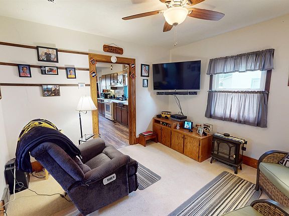 305 Peterson St in Alta is a great smaller home. The owner has a non-conforming bedroom on the main level (no closet). The living room has newer vinyl flooring that runs into the kitchen and dining room. The kitchen has a beautiful original built in hutch with glass doors. The main level bath is updated with a glass doored, tile walk in shower. This bath also has a large 4 door closet that the owner uses partly for his bedroom closet while using the main floor non-conforming bedroom. The other 2 bedroom are upstairs, both are good size with large closets. The upstairs bedrooms have gravity heating and cooling. The home's main level has central heat and ac. The home also has an unfinished basement. The garage is newer, insulated, oversized - 988 sq ft, and has openers of both doors. This home is low maintenance. There is a small deck and a small patio for enjoying the outdoors and a front porch that has been enclosed.