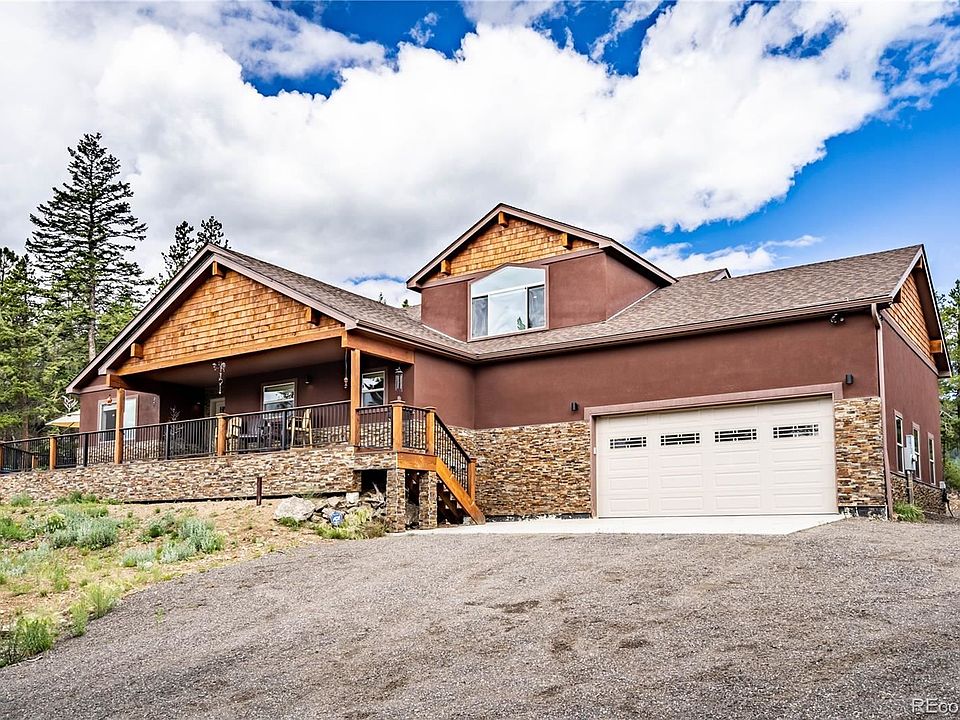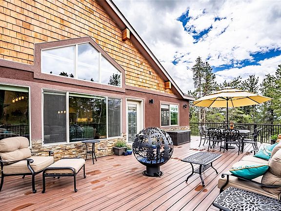 Nestled in Paradise Valley you will enjoy the peace and tranquility that living in the Colorado mountains brings while only being minutes from down-town Black Hawk. This newer home on over 3 acres features so much! Let's start with the circular driveway that provides an abundance of storage for RVs/trailers etc. The garage has a two door opening but is 3-4 spaces deep with 735 sq ft of space. Walk up to the wrap around deck where you will have plenty of outdoor entertaining space. Enter the home & notice all the natural light & the beautiful vaulted wood ceilings. The modern looking kitchen features a gas stove, under counter microwave, two-toned cabinets, granite counters, under cabinet lighting & eat-in island. This opens up to a designated dining area with a stone fireplace that spills into the living room. To the left of the entrance is an office/bedroom (there is a closet) with glass french doors. At the back of the house is the primary suite also with vaulted wood ceilings, modern bathroom with free standing tub, shower and two separated sinks with a spacious walk-in closet. On the other side is where you'll find two additional bedrooms & shared bath. Upstairs is the loft (perfect party/game room) showcasing the beautiful views of the property. Tucked away at the back of the upper level is the perfect guest suite with 3/4 bath. Between the kitchen and garage is a large mudroom/laundry area with lots of additional cabinets, and utility sink. Overall lots of storage/closet space. The owners have added an energy efficient on-demand water heater and a heated septic tank. Incredibly LOW TAXES in this area. There is so many outdoor activity options with trails leading from the neighborhood. Just a few minutes away is Clear Creek Canyon with fishing, hiking/biking, rock climbing etc. Down-town Denver is a 45 minute drive. Short term rentals are allowed per the HOA. Buyer responsible to check with City and County guidelines.