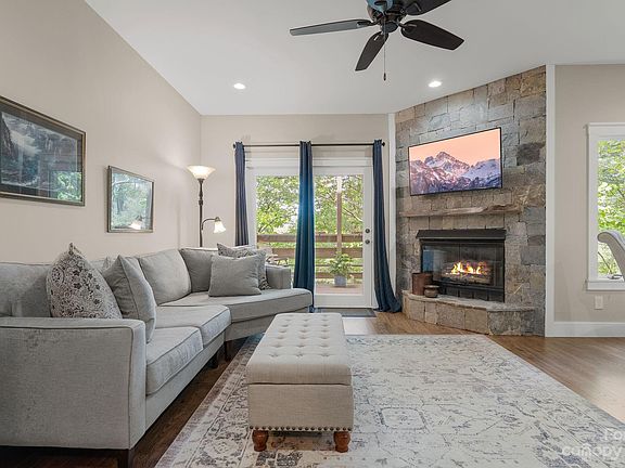 Nestled among the trees and natural foliage, this property offers a serene and peaceful setting, while still providing the amenities of city living. Located only a 5-minute drive from Downtown Asheville, you have easy and swift access to restaurants, shopping centers, hospitals, and scenic attractions like the Blue Ridge Parkway. This condo boasts 9-foot ceilings, new flooring, recessed lighting, and an abundance of windows with tranquil views. Additionally, the bathrooms have been fully renovated, and the kitchen has been updated with granite countertops, stainless steel appliances, soft-close cabinets, a copper sink, and more. Relax in front of the fireplace or unwind in the whirlpool tub. Private decks to relax, or entertain, if you so choose. The lower level has a separate entrance, a bedroom, full bath, sitting area, and office - perfect for creating a separate living space. The community also offers a well-maintained pool and clubhouse for your enjoyment.