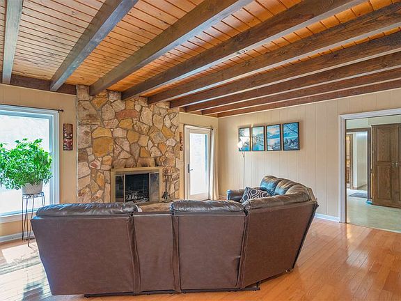 TRUE OASIS on 5 acres surrounded by 88 acres of woods. If you want privacy, a large home and an in ground pool then this is the house for you! Over 3,000 sq. ft. with 5 bedrooms and 3 bathrooms with new carpet and plenty of room for kids and guests. The master is on the main level along with a nice office off the front entrance. This home was custom built by the original owner and the large eat in kitchen has granite tops with amazing cabinets and pantry that lights up and folds out when opened. The living room has rustic beams in the ceiling with a wood burning fireplace. The basement has 10 foot ceilings and walks out to the side yard and large 31' x 36' barn. The backyard has a 20'x 30 patio area for grilling and a beautiful in ground swimming pool with a new pump that has an auto timer and auto chlorinator. If that isn't enough out door living then you can also grab a cup of coffee and enjoy the 6' x 35' front porch that looks out over the long 3/4 mile drive way.