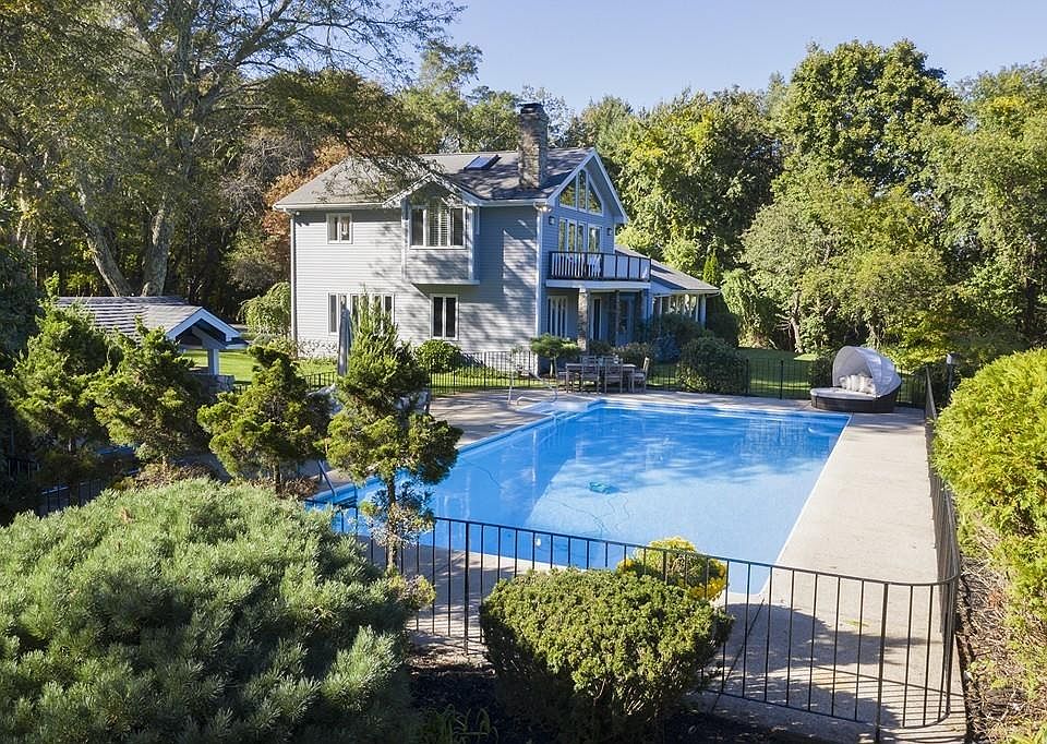 A Hidden Gem! Meander up a long, private drive to this Shangra-La Retreat! This contemporary home is surrounded by extraordinary 2-acre landscaped grounds that consist of a gorgeous HEATED POOL, A TENNIS COURT, cute brick patio, circular drive & abuts the additional 5 acre lot being offered separately (see below). There is really nothing like this! The home has a very livable floor plan that is great for both family living & indoor/outdoor entertaining! The hub of the home is the fireplaced great rm/dining rm that has large windows that throw in great light and look out over the grounds & pool. 2 bedrms (1 en suite), kitchen & another full bath make up the rest of the 1st floor. The Master suite is the entire 2nd floor and it is stunning..soaring ceilings and fireplace, spa-like bath with steam shower and radiant heat, & huge walk-in closet...and, a balcony that looks out over the property and is the favorite sunning/reading spot! The lower level designed & built as a perfect playroom!