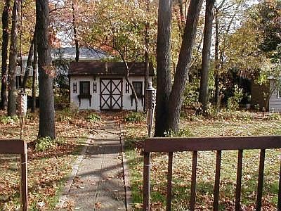 STATELY TUDOR, 2 STORY on scenic treed lot. This beautiful spacious home boasts 4 bedrooms, 3.5 bath and 2.50 car garage. Formal living/dining room with hardwood floors, large windows that let in plenty of natural light. Spacious eatin kitchen with ceramic floor includes stainless steel appliances, lots of cabinets and a step down to family room with brick fireplace. Sliding doors open to wood deck and beautifully landscaped backyard. Master bedroom suite includes large wall closet and ceiling fan. 3 additional bedrooms with closets, carpeting and ceiling fans.Upper level includes extra bonus room for plenty of storage. Partially finished lower level with whirlpool bath. Across from Plum Creek Park that includes access to tennis courts, walking trails and much more!
