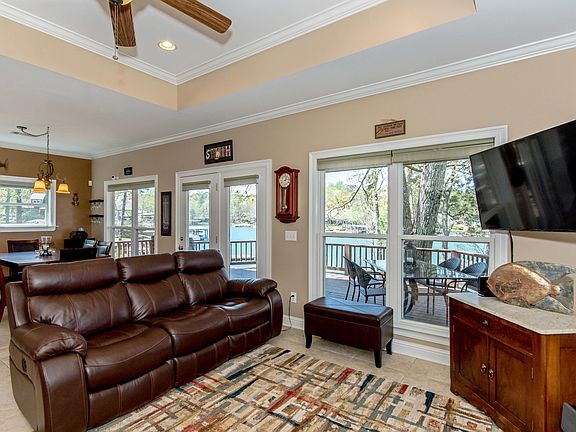 Modern move in ready Lake Home near The Social, Chimney Rock and Goat Island in the Castaway/Kowaliga Bay Area! Perfect for full time lake living, the light and airy kitchen flows into the den and continues onto the big wraparound porch. Large master suite is on the main level. Downstairs has a second full living room plus 2 nice big bedrooms, an office/bar area, and a bonus room with a Murphy bed. Both levels are wrapped in sit-a-spell covered porches perfect for catching the sunset and grilling out. The covered boat house anchors the great swimming cove. There is a plenty of parking and the carport has a storage room as well. Low maintenance yard makes for easy living. Welcome home to Lake Martin!