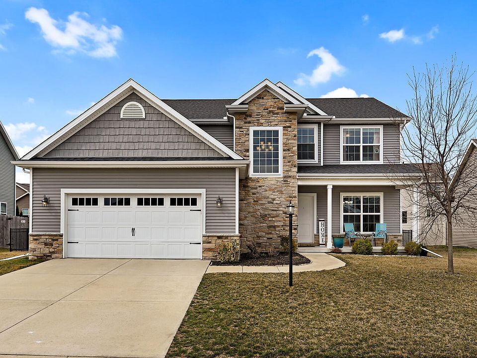 Fantastic 5 bedroom 2-story located in Liberty on the Lakes. Beautiful hardwood floors greet you as you enter and lead you to the open floorplan where the kitchen, dining, and great room are all open to each other. Upstairs you will find 4 bedrooms including the master bedroom with double closets as well as a separate tub and shower. The finished basement has another bedroom and a full bathroom as well. The yard is fenced and the garage is oversized to allow for plenty of storage.